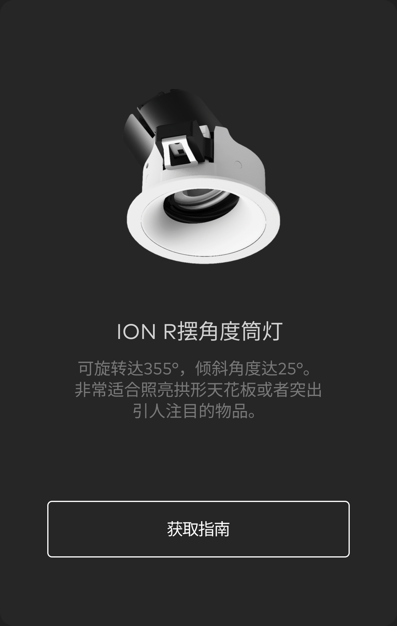 配置ION R摆角度、重点照明和聚焦筒灯,满足您的照明需求。